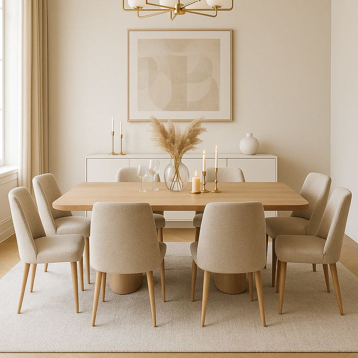 This dining table is a masterpiece of design, featuring a unique natural wood grain that makes each piece visually distinct. Its artistically crafted base serves as a stylish focal point, enhancing sophistication. Offered in three customizable colors, it seamlessly blends with your decor. Paired with the Drumawillin chair—with its crisp white seat and sleek black legs—this set offers a modern, contrasting elegance. Designed for convenience, it includes all hardware for quick, frustration-free as