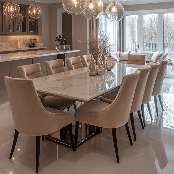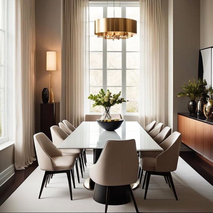 This dining table is a masterpiece of design, featuring a unique natural wood grain that makes each piece visually distinct. Its artistically crafted base serves as a stylish focal point, enhancing sophistication. Offered in three customizable colors, it seamlessly blends with your decor. Paired with the Drumawillin chair—with its crisp white seat and sleek black legs—this set offers a modern, contrasting elegance. Designed for convenience, it includes all hardware for quick, frustration-free as